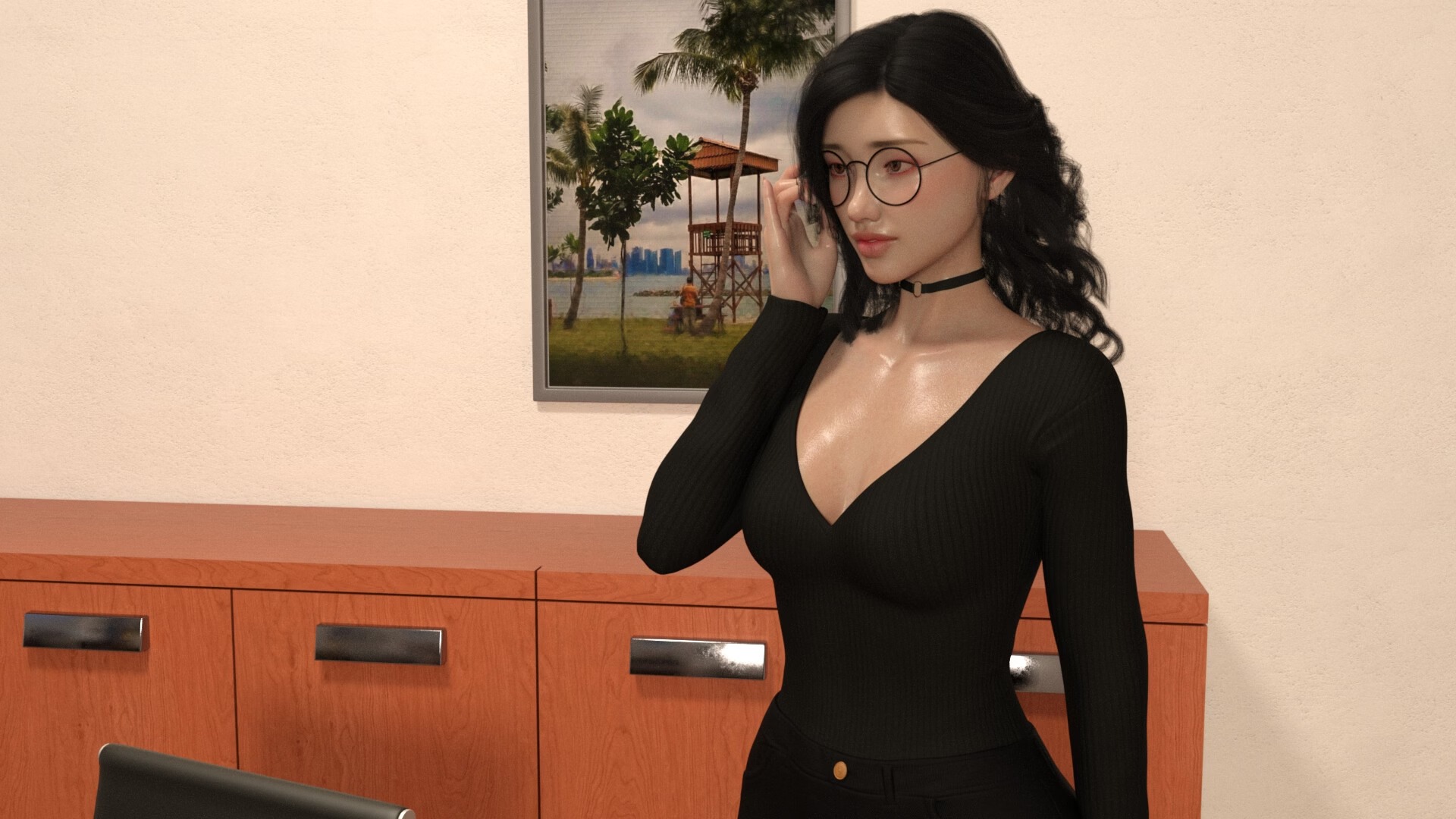 这是一部成人视觉小说,你将扮演一名经理,与公司的实习生会面并对其进行培训。