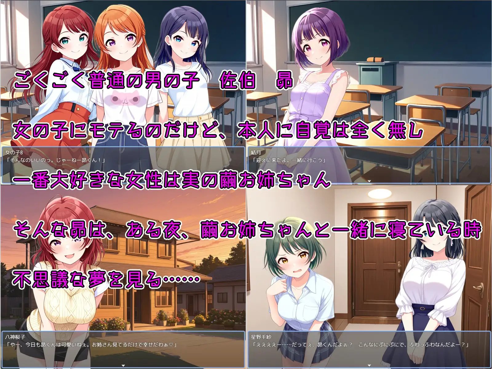 然而那天,昴第一次做了色情的夢……夢到了正在更衣的姐姐和淋浴中的裸體姐姐,體驗到了勃起。更糟糕的是,醒來時,繭竟然裸體誘惑昴。