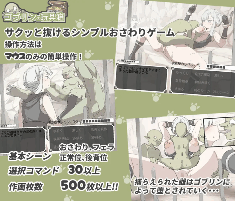 通过超过 500 张手绘动画,展现了哥布林们肆意玩弄捕获女性的场景。