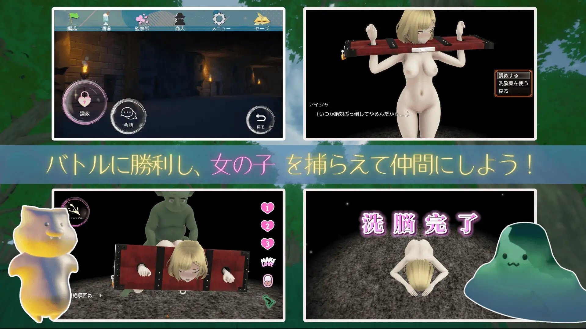 隨著調教的增加,成功洗腦後可以成為夥伴,並跟隨一起冒險!