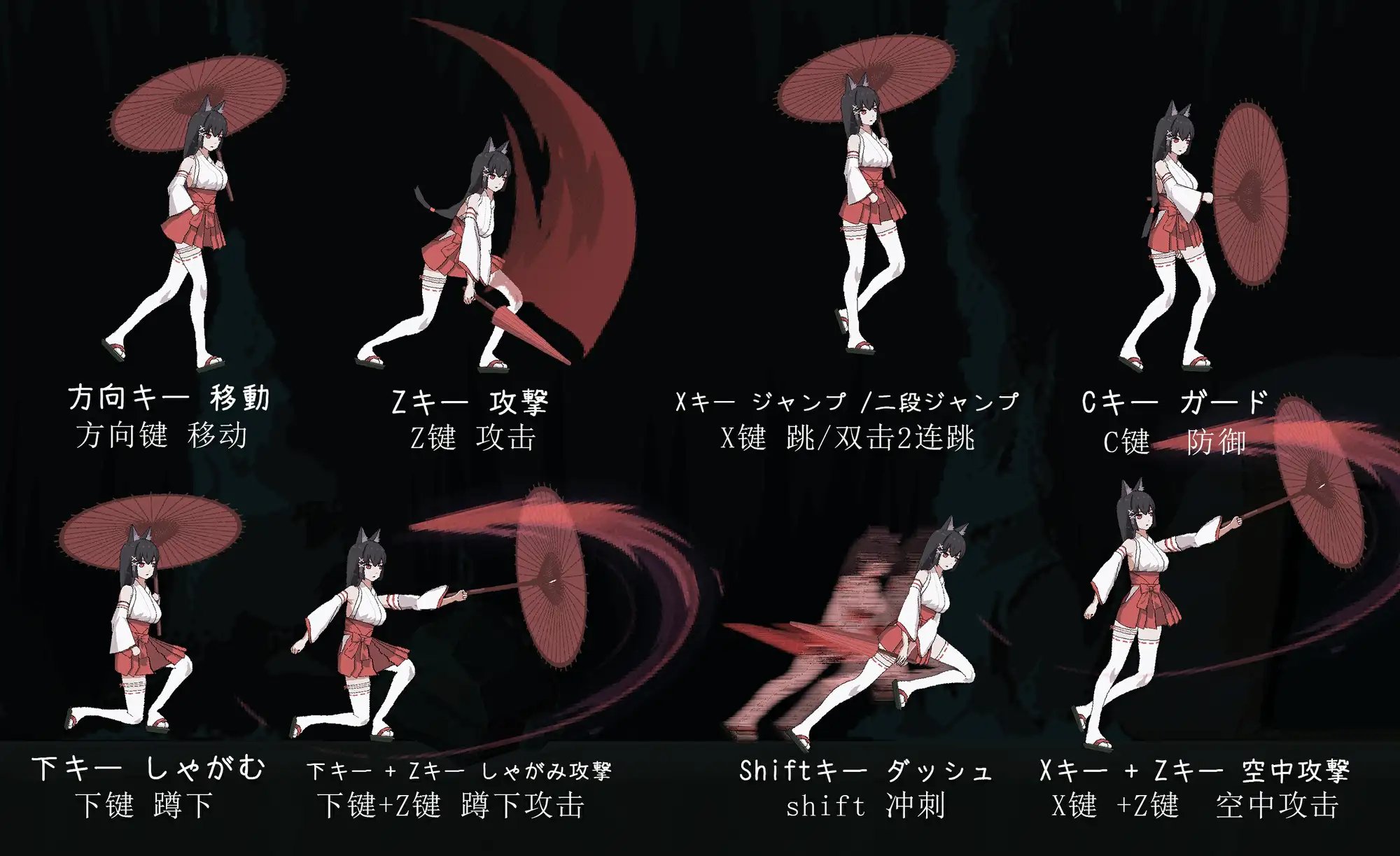 橫向捲軸像素動作,運用紅傘討伐妖魔!