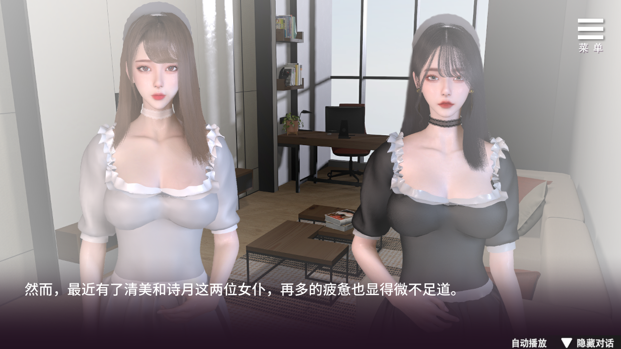 ◇每日早上可以替女仆安排工作;上班时可以选择与女仆、秘书互动或炒股;晚上则可以选择是否出门、在别墅里与女仆相处,度过甜甜♀蜜蜜♂的一晚。