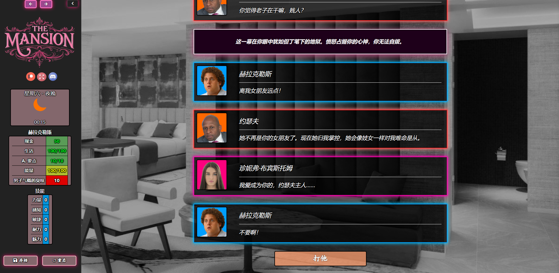 随着日子一天天过去,好友那不为人知的险恶秘密开始逐渐暴露。你一边搜寻隐藏的线索,一边在探寻宅邸华丽外表下的真相时,面临着种种道德困境。有些女性开始神秘失踪,你必须设法将她们从绑架者(或绑架势力)手中解救出来。