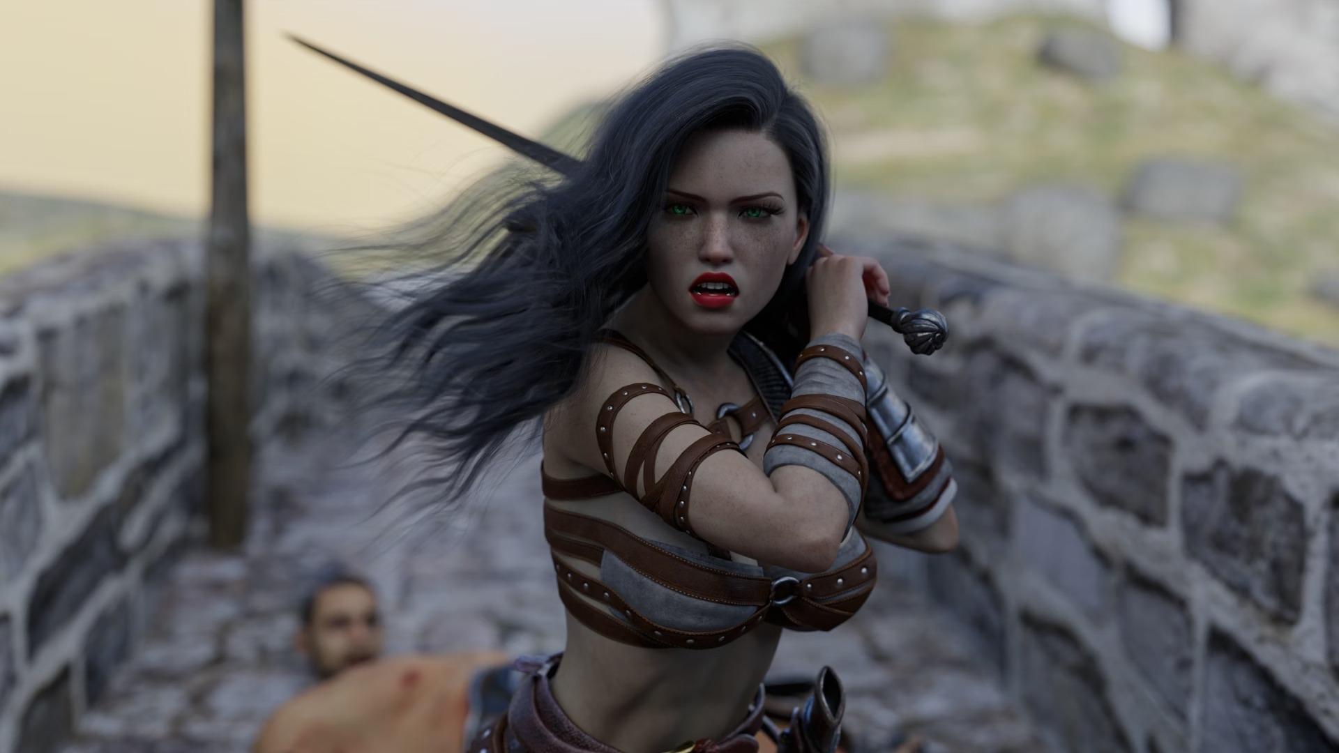一群女战士组成的部落“地狱之子”在废墟中发现了昏迷不醒但毫发无损的她。
