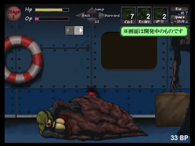 接觸到敵人時,Hp會減少。同時,螢幕上會出現像凝固的黑紅血跡一樣的「損傷狀態」。在損傷狀態下觸碰到敵人,會當場被抓住並進入「RAID狀態」。
