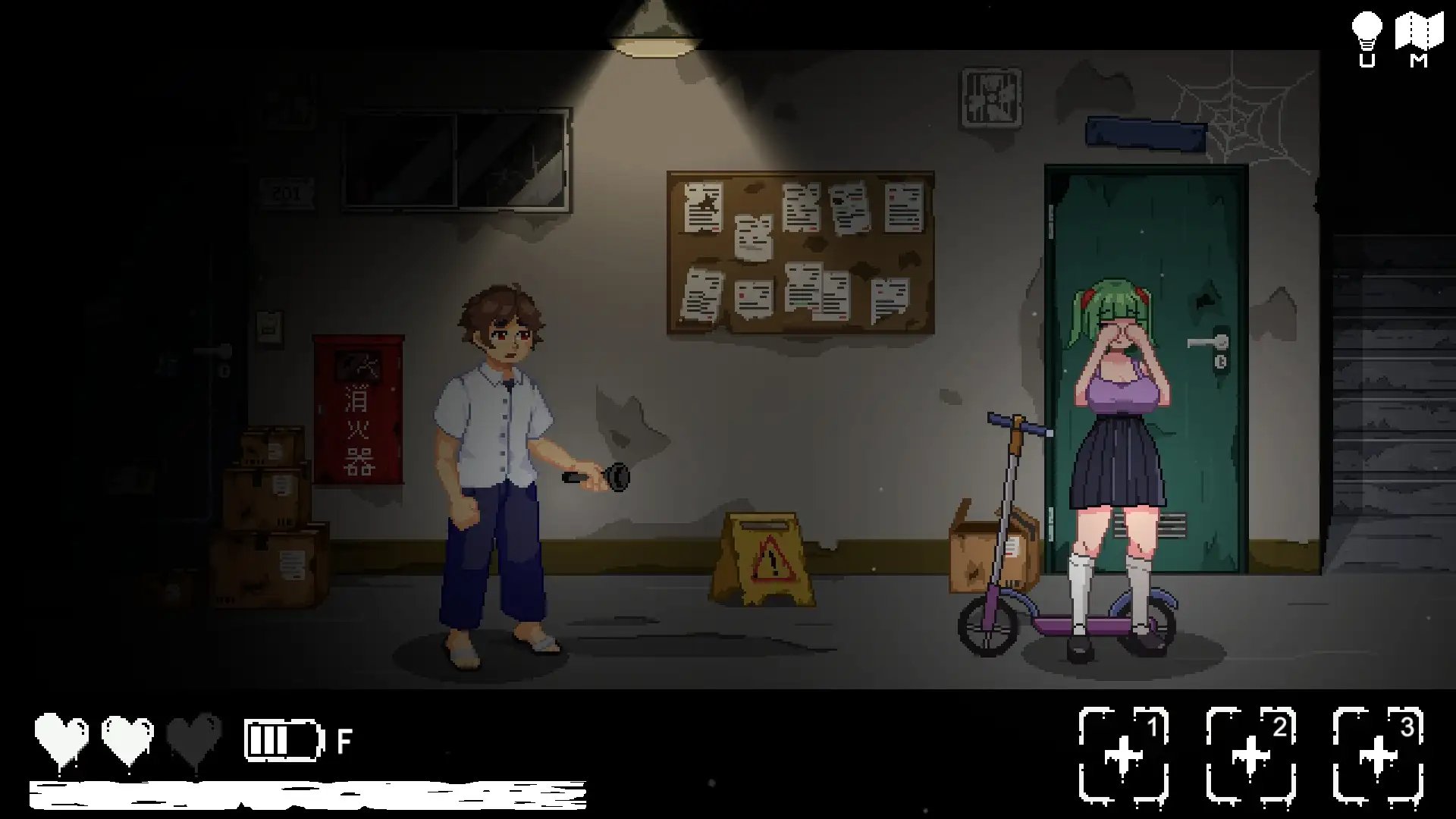 他一邊躲避著她們,一邊尋找逃出這棟公寓的方法。