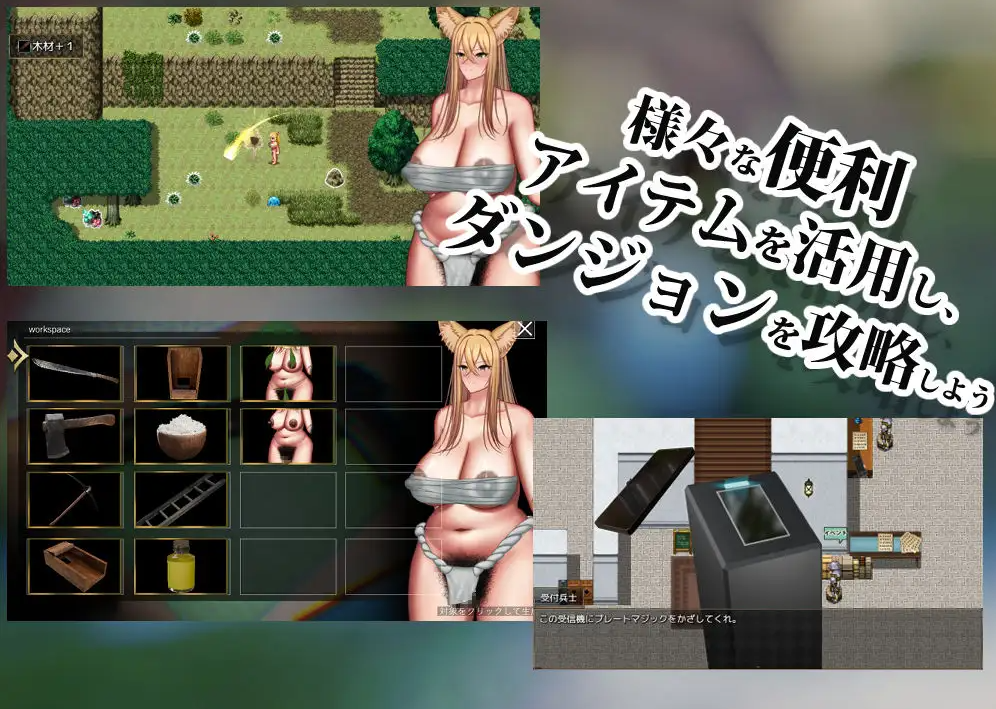 使用在地牢中收集的素材,通过“工作台”制作道具,来攻克地牢吧!