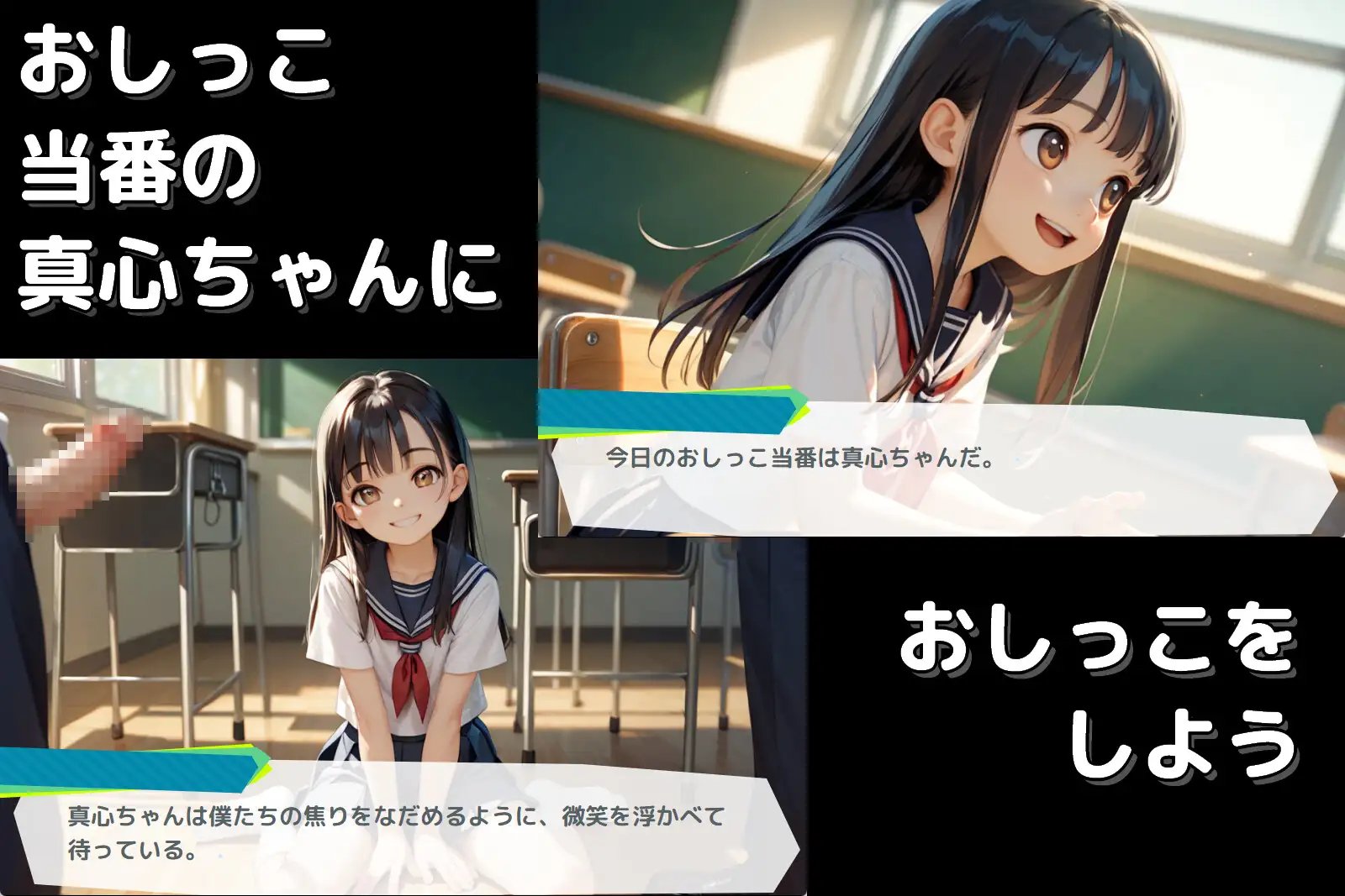 讓尿尿值日生真心醬幫忙接住尿尿吧。溫柔的真心醬會用嘴巴、屁股和下體,接受大家的尿尿哦。※此作品由AI生成