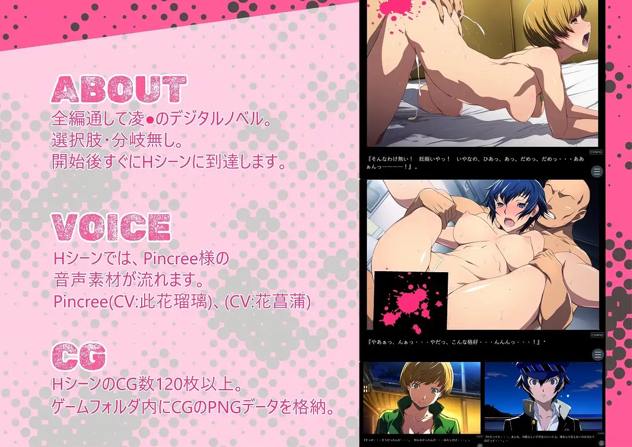 這是一部以《女神異聞錄4》登場人物為題材的數位小說,內容是遭受威脅與被侵犯的設定。全篇由凌虐與強暴情節構成。