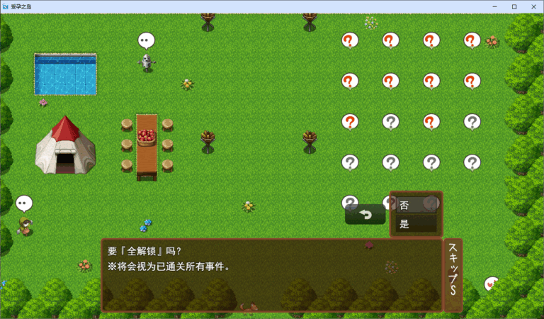 前半部分通关后,岛上的神哈拉米大人降临,之后所有人都怀孕的话,就暂时算通关,可以观看结尾了。但如果推进后半部分的事件,新让女孩成为伙伴,那该女孩也会被加入到结尾中。
