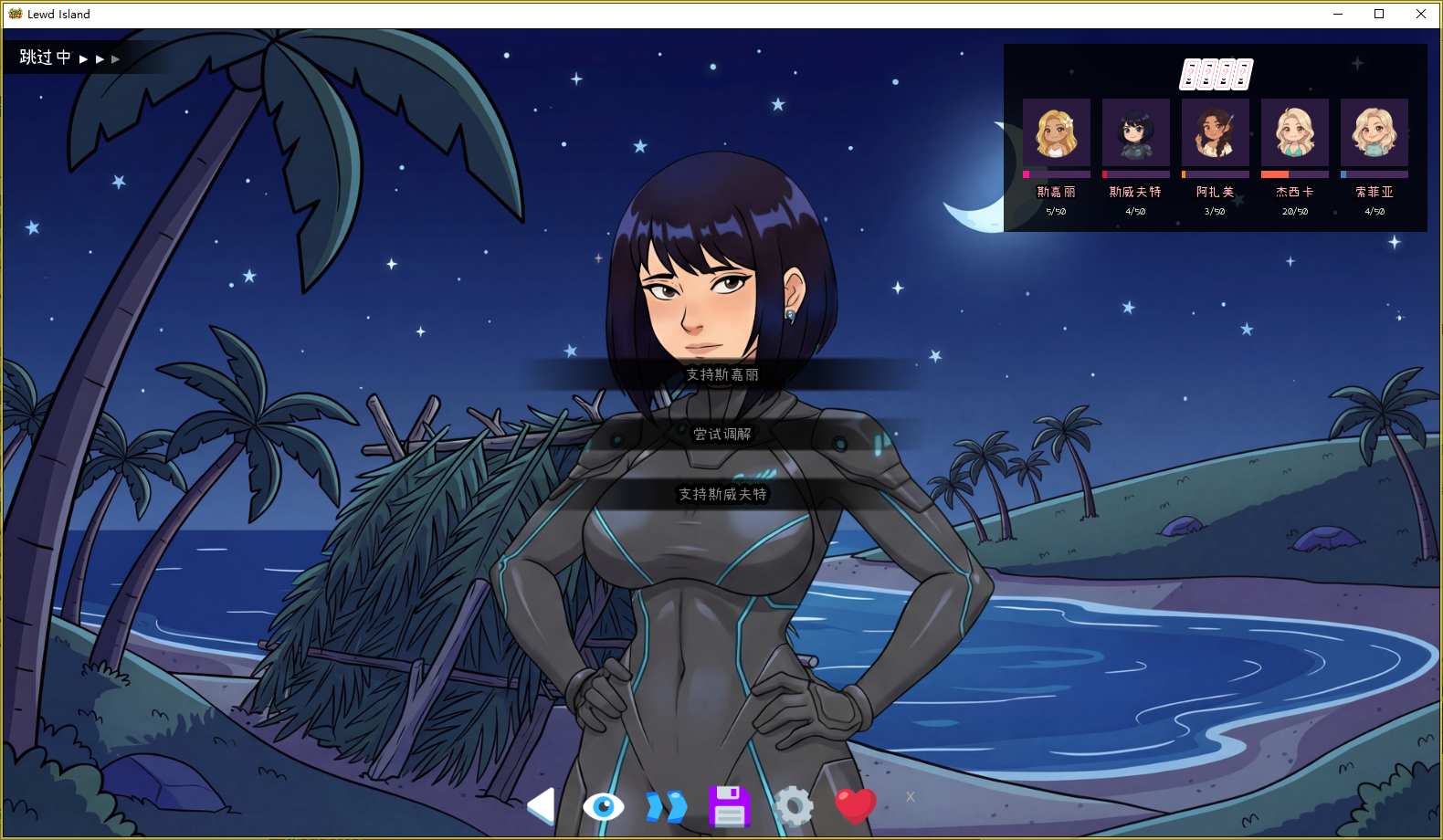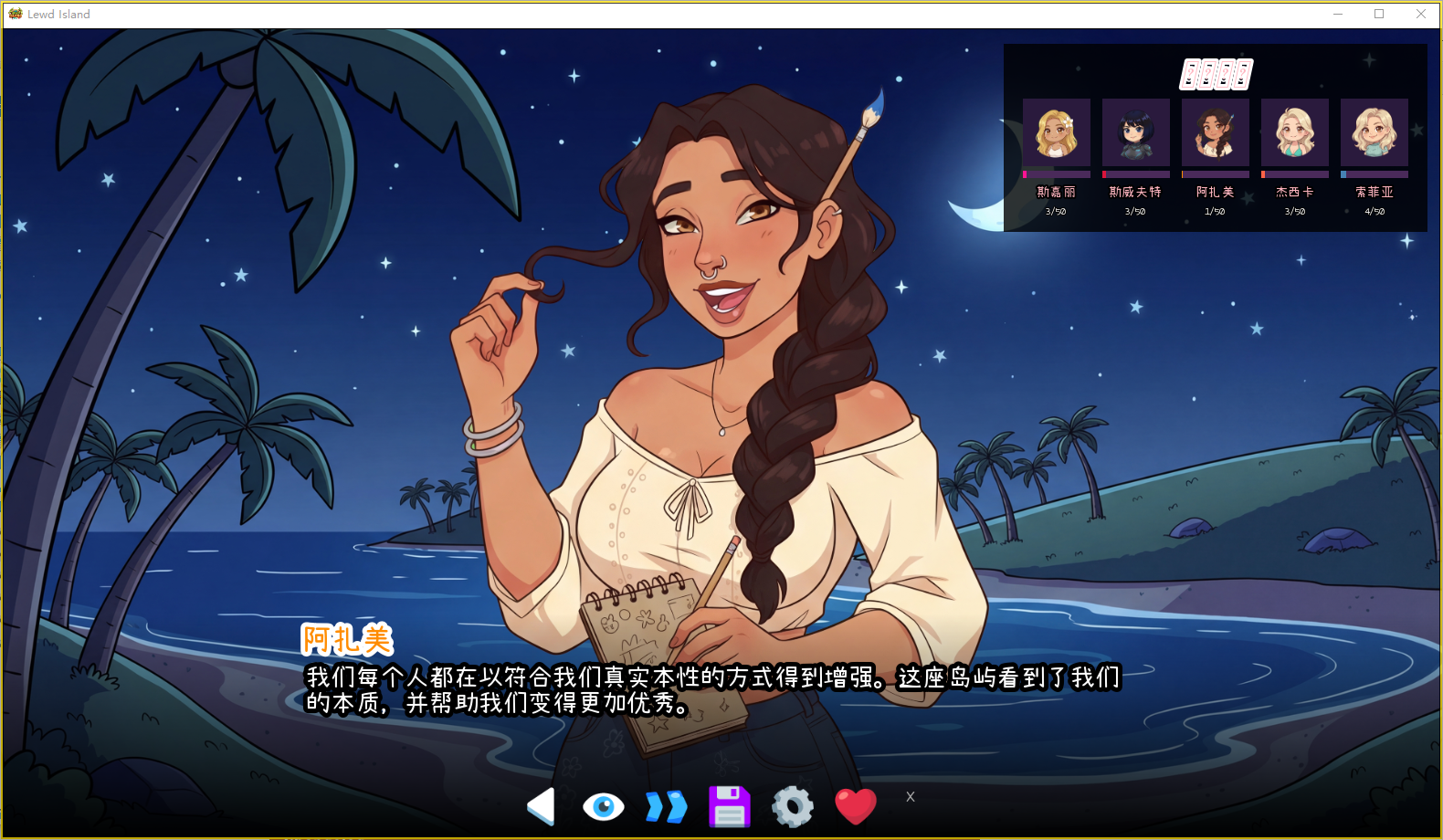 体验超过 25 个( demo 版中有 6 个)精心设计的亲密场景,这些场景采用流畅的逐帧动画。从瀑布边的发现到月光下的海滩邂逅,每一个瞬间都通过细致的 artwork 呈现,在异域神秘感与真实的激情之间取得了平衡。