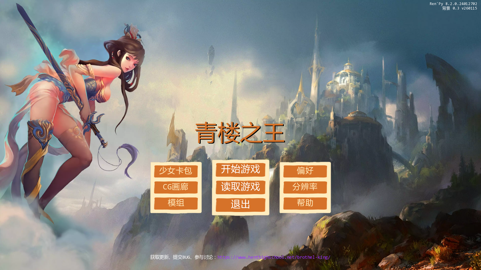 《妓院之王》是对《模拟妓院》的另一种演绎,还从《奴隶制造者》等其他游戏中获得了一些灵感。它是用 Ren’Py 制作的,我的目标是打造一款有趣的游戏,拥有简洁的用户界面、精美的艺术设计和完整的背景故事(不过背景故事尚未完成)。