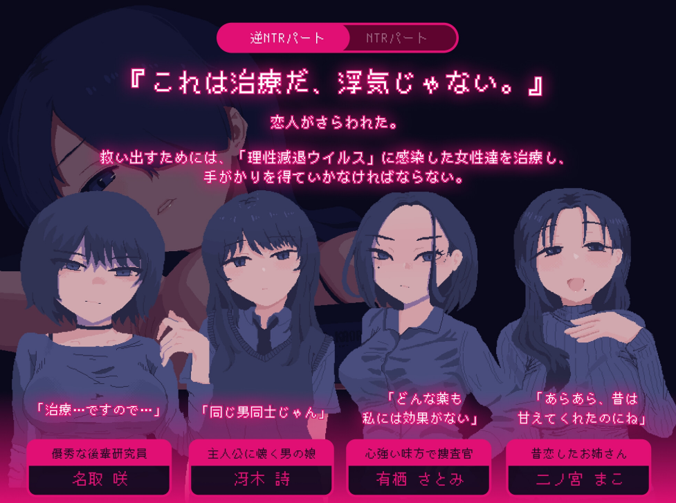 为救出恋人必须治疗感染“理性减退病毒”的登场人物们并逐步获取线索。