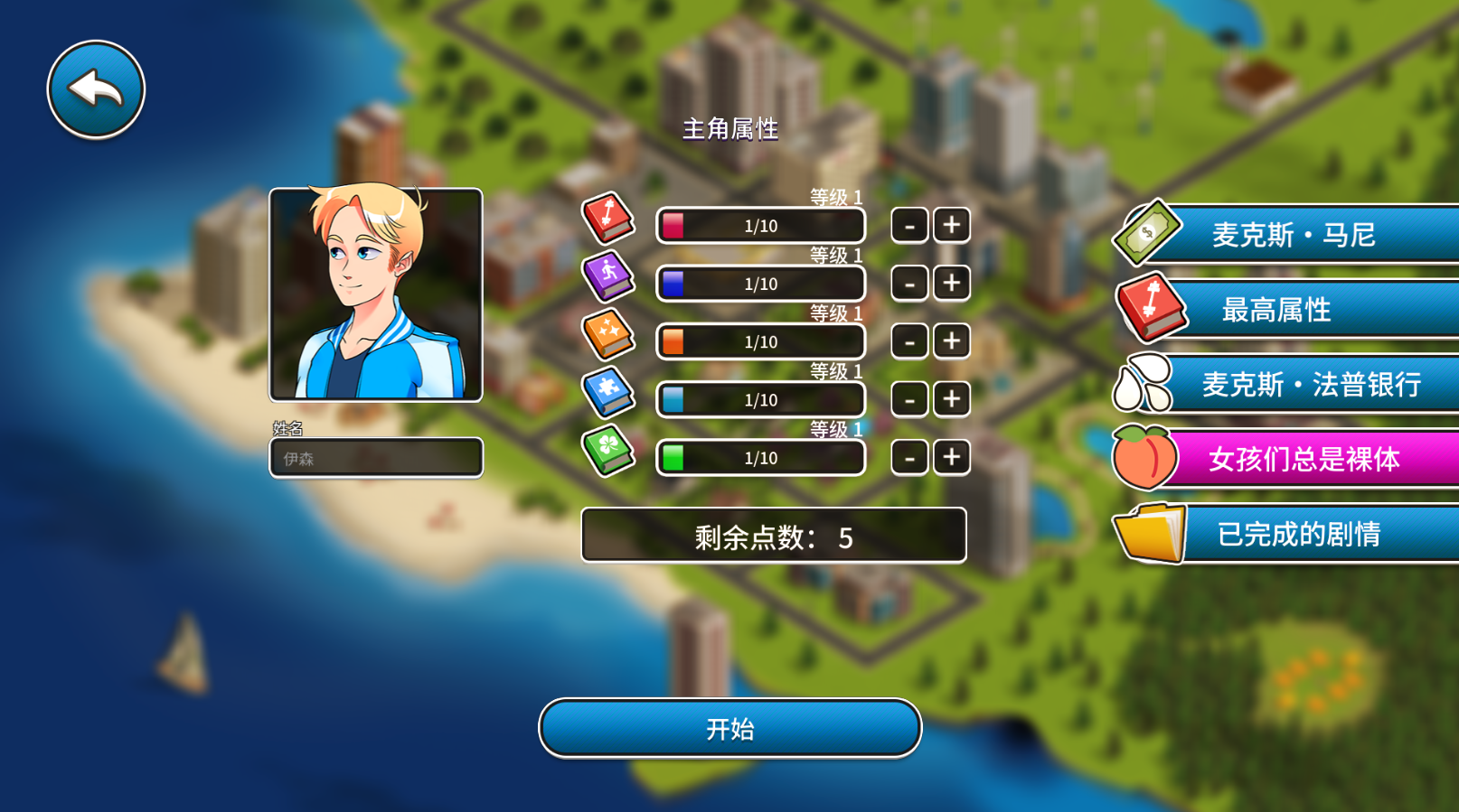 库存、统计数据、能量、金钱、约会游戏系统