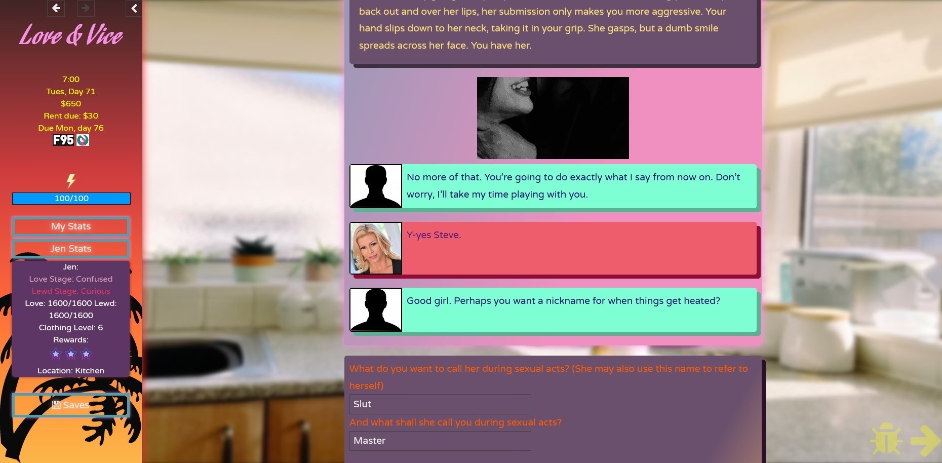 你从自我贬低的日常中挣脱出来,踏上寻找人生方向的旅程。你的道路由你选择,你对待沿途遇到的人的方式也由你决定。或许你想成为魅力四射、令女士们无法抗拒的万人迷?又或许你只想把她们玩弄于股掌之间?