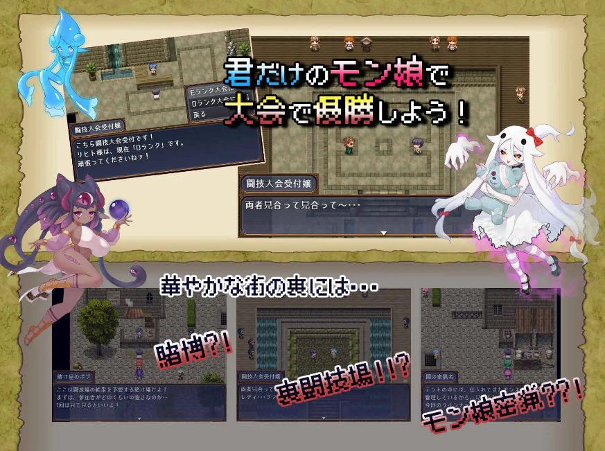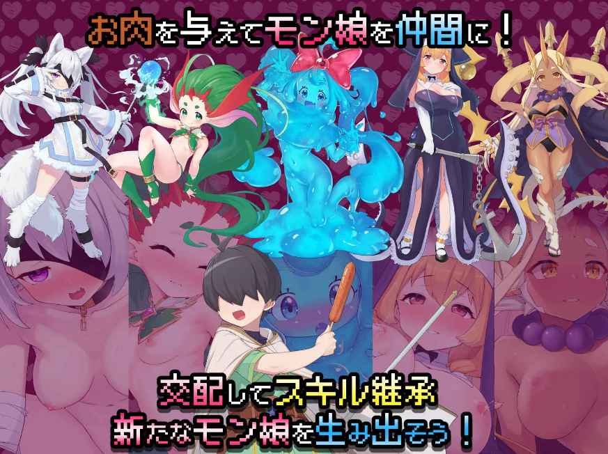 给魔物娘喂食肉类,让她们成为伙伴,通过融合创造出新的魔物娘,并不断强化她们 —— 这款正统魔物娘 RPG 终于登场了……!!