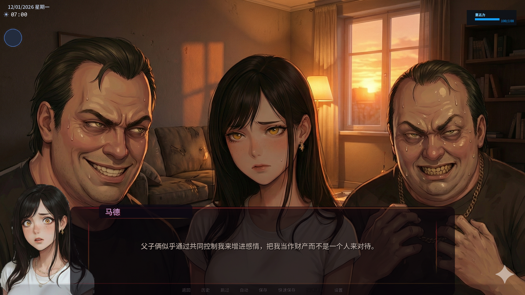 ・一旦你的房间被解锁,且爸爸看到过玛德和继兄在客厅里,也知道你偷了 U 盘,就会在你的房间里发生阴道性交