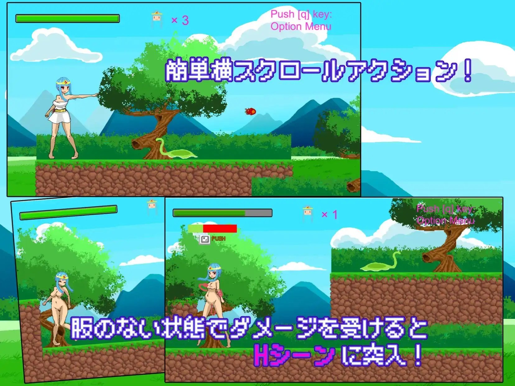 若與敵人相撞,衣服會被剝落;在裸露狀態下再次觸碰敵人,則會觸發特殊場景!