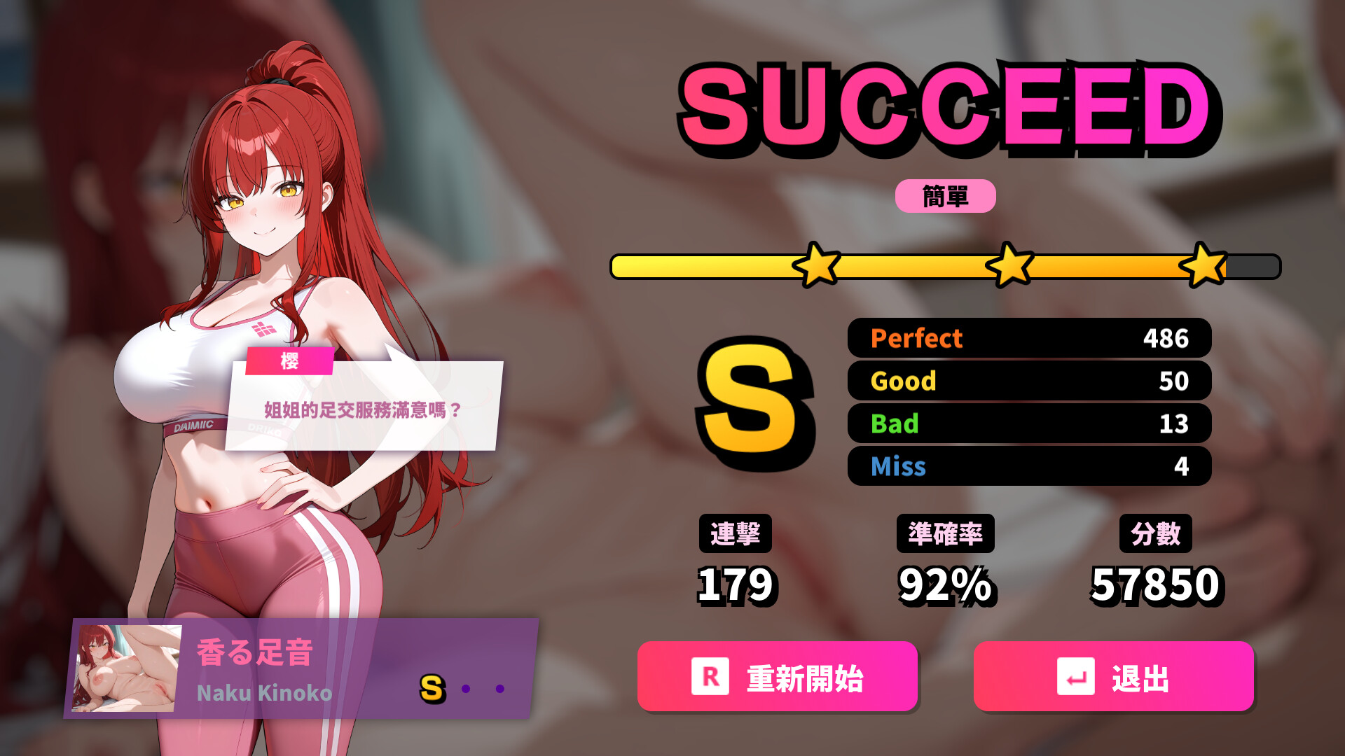沉浸在激情火熱的節奏世界!《性愛節拍》(Sex Beats)是一款融合音樂節拍與熱辣動漫CG的成人節奏遊戲。音符從螢幕兩側飛來,精準按鍵觸發判定,即可觸發誘人動畫+ASMR立體聲耳姦,與音樂完美同步,帶來心跳加速的快感!