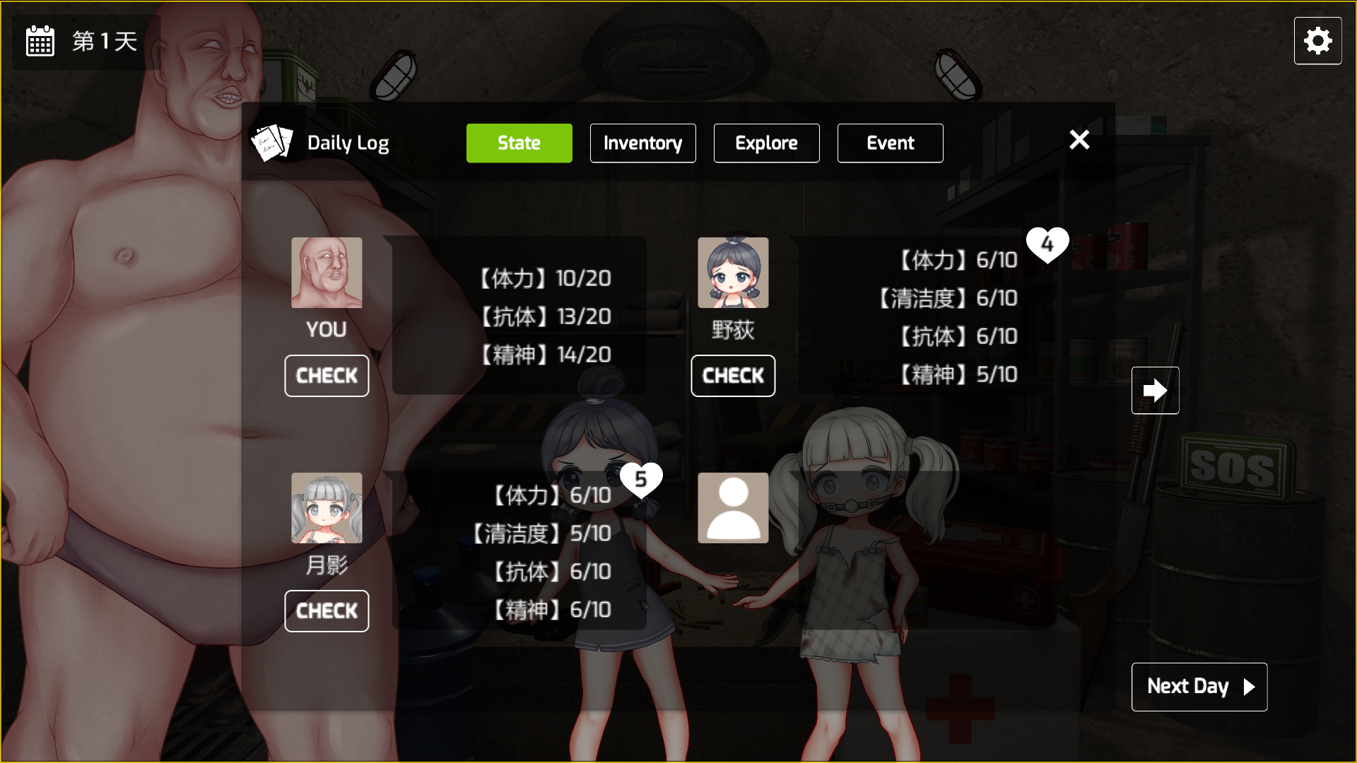 ☆ 作为避难所之主,首先要维持好自身的状态。