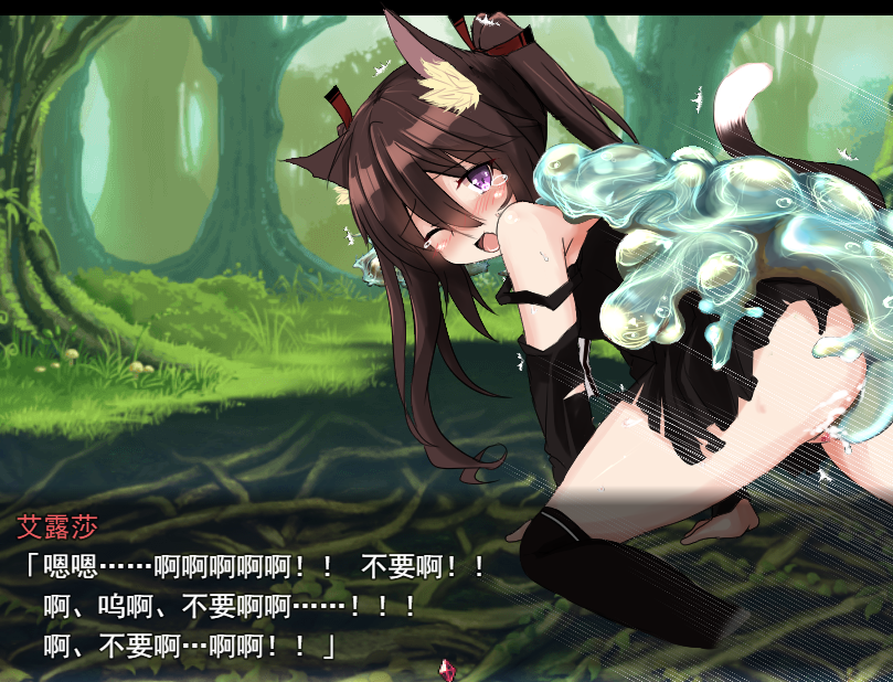 这款游戏是一款角色扮演游戏(RPG),主人公是一位兽人族少女,为了组建家庭,她第一次从森林深处走出外界,在一个兽人族没有人权的国家展开冒险,期间遭遇各种不讲理的、色情的对待。