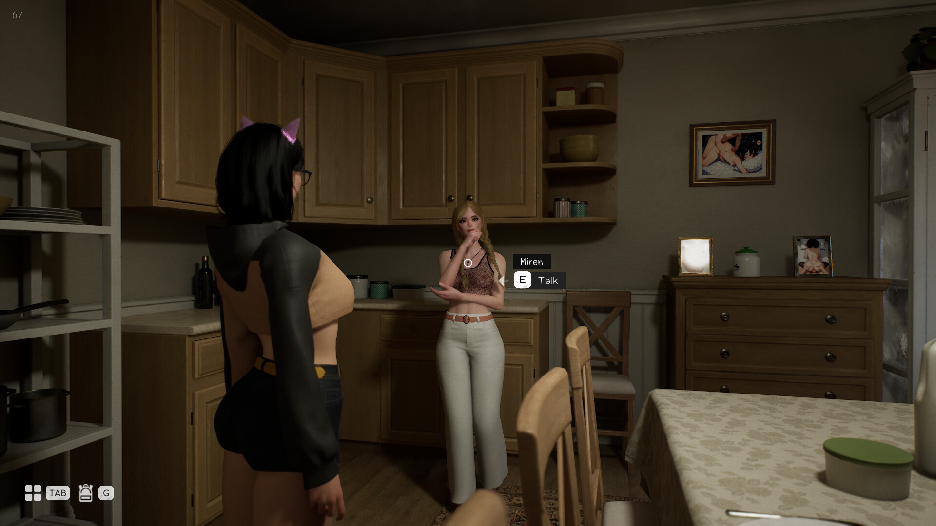 自由探索整棟房屋,發現分布在各個角落的多種互動對象。從裝飾物到帶有挑逗意味的道具,許多物品都可以觸發特殊動畫與沈浸式互動時刻。房屋內充滿細節——海報、主題裝飾以及私密用品——營造出大膽而風格化的氛圍。