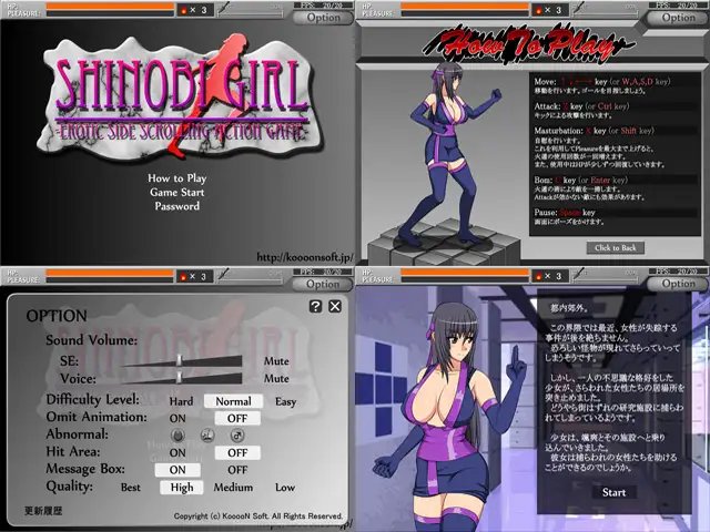 敵人總計有17種,大概有使用價值的動畫我們提供了34種+α(速度變化·射精·高潮·自慰·事後·遊戲結束畫面等)。