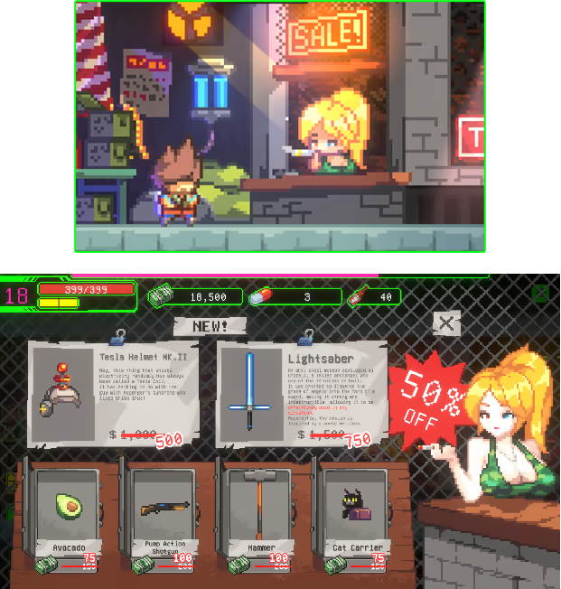 · 一个可以解锁新装备并在战斗前获得你想要的装备的商店。