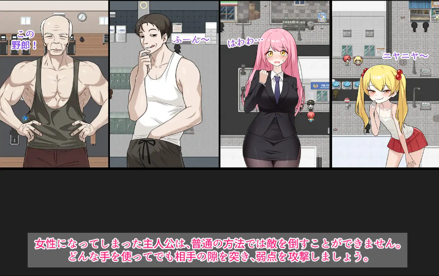 变成女性的金·赫尔酱(キム・ヘルチャン)无法用通常的方法打倒敌人。