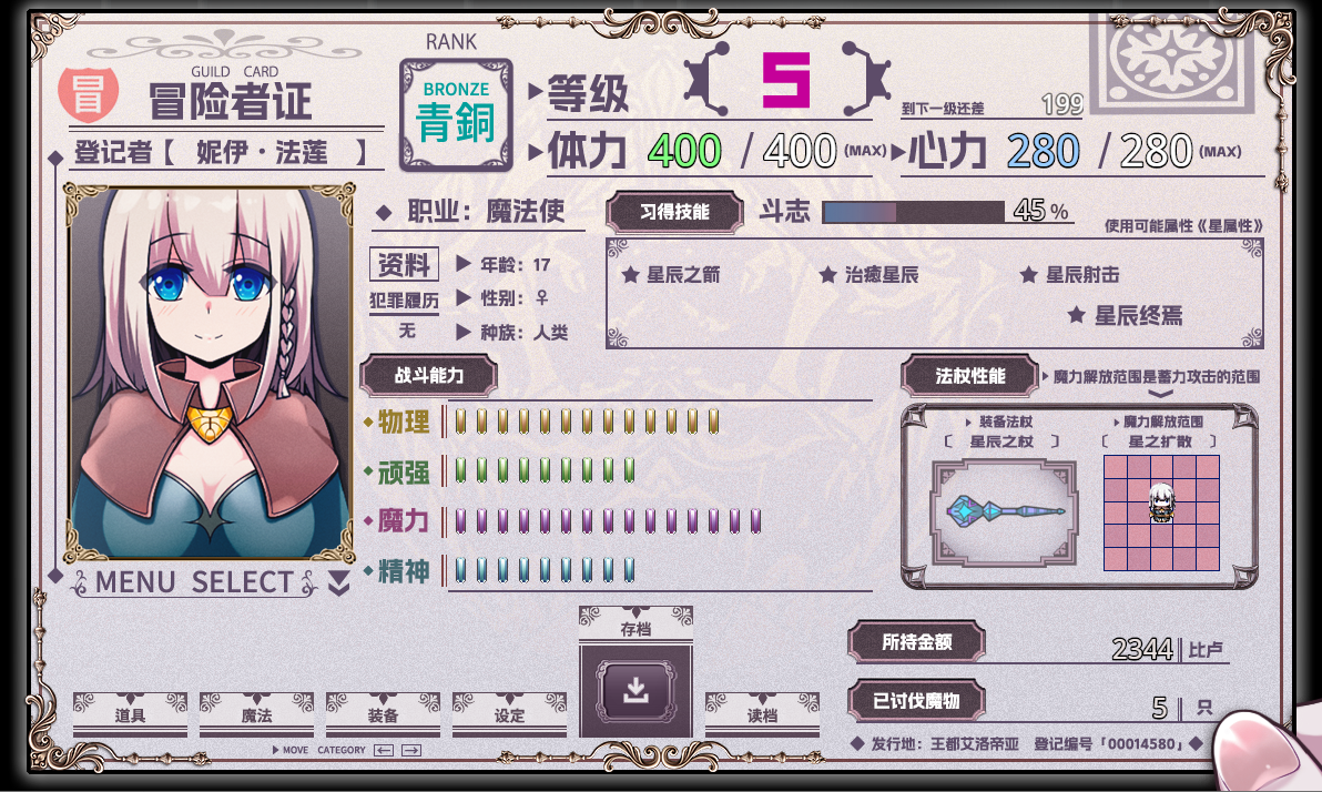 能够熟练使用杖术,以及自己命名的固有魔法—星辰魔法进行战斗。