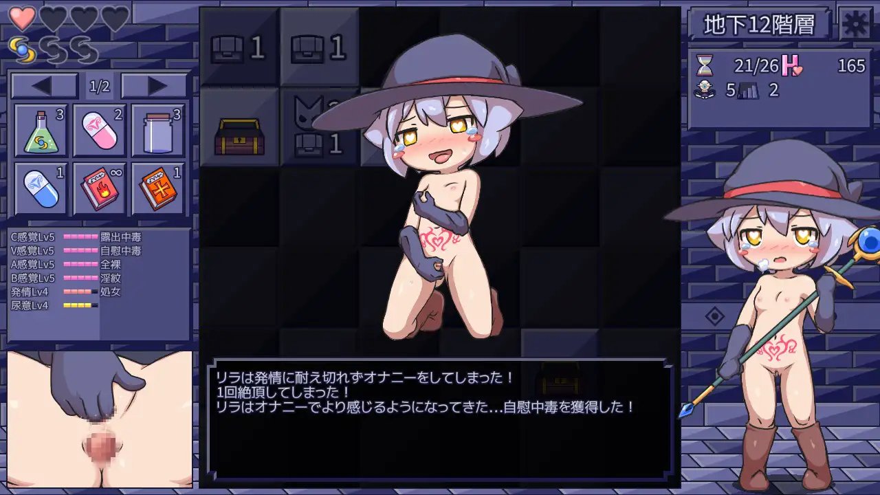这是一个莉拉酱——一位有着死鱼眼的小魔女在色气陷阱地牢中探险的游戏。