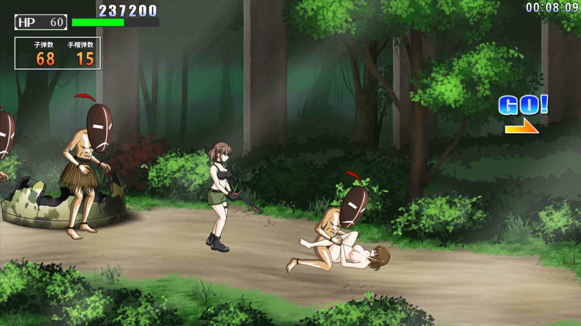 操作只有「方向键」和「攻击」「跳跃」「手雷」三个按钮。 使用补给的武器等来完成任务。