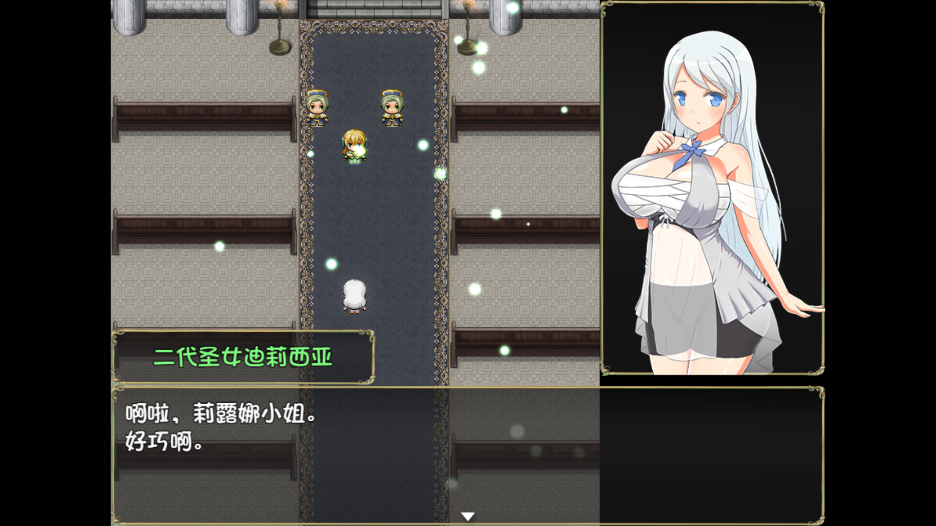 莉露娜从出生开始便成为了教会的一份子,为了成为圣女而进行着各种训练。但在她的养父去世时,她不仅失去了圣女候选人的位置,而且还被派去进行一场连她本人都不清楚详情的仪式