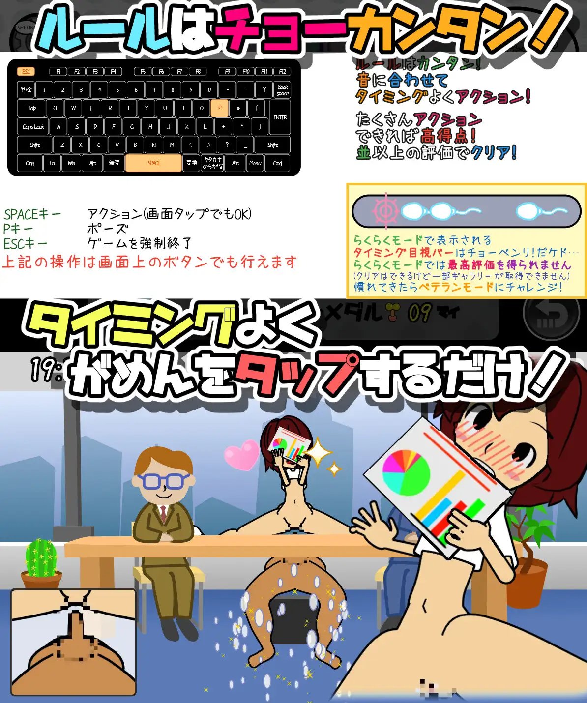 《律动天国(律動のぱらいぞ)》是一款类《节奏天国》的成人音乐节奏游戏,