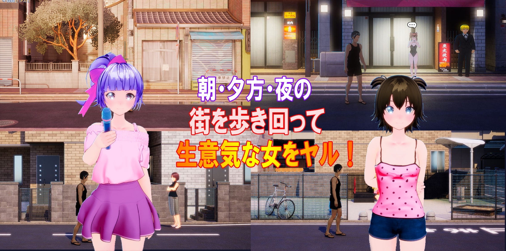 该城市有早上、中午和夜间三个时区。根据一天中不同时间出现的女主角会有所不同。有些女主角只有满足特定条件才会出现,让我们去寻找她们吧!