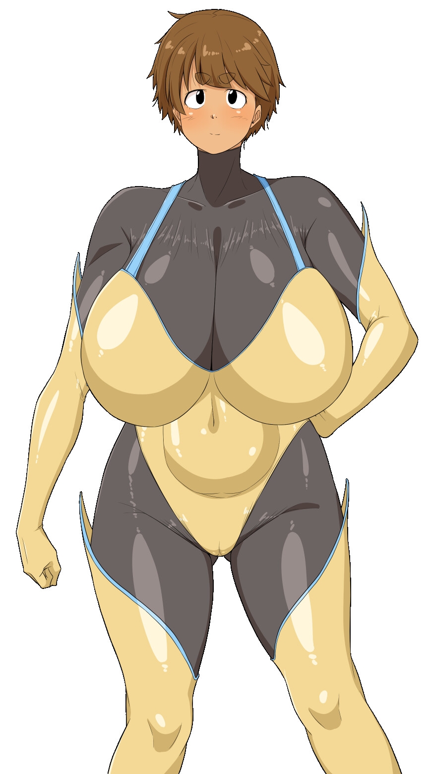 她是一个拥有大胸部和阴茎的扶他女人。