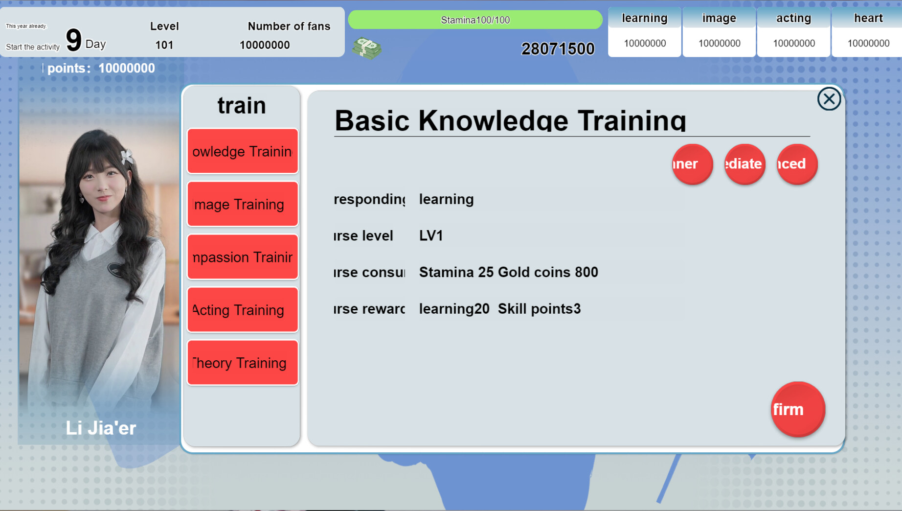 玩家需要在一年內成長並嶄露頭角,根據玩家每個周目的活躍,每個角色將會4種不同的劇情結局等待玩家的發掘,同時還有20段故事主線劇情故事等你收穫感動!