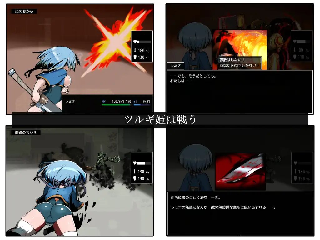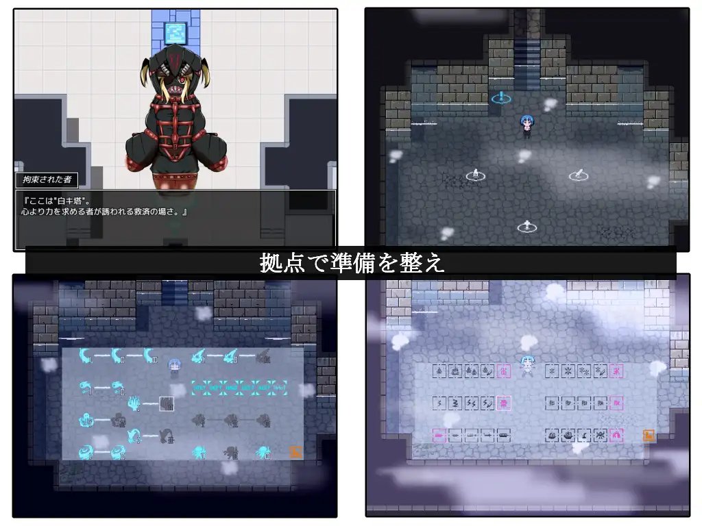 每當遇到色情狀況時,狀態就會提升,並且通過調查殘留物獲得分配用的狀態點。公主探索越多,變得越強。可以購買逃跑道具,特意探索超出能力範圍的試煉也許是個好主意。