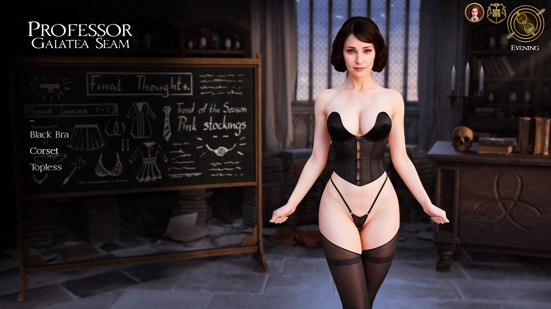 在 0.3.3.3.alpha 版本中,你可以与赫敏对话,通过解谜来解锁各种衣橱物品,并随着赫敏的堕落而得到她的奶嘴。